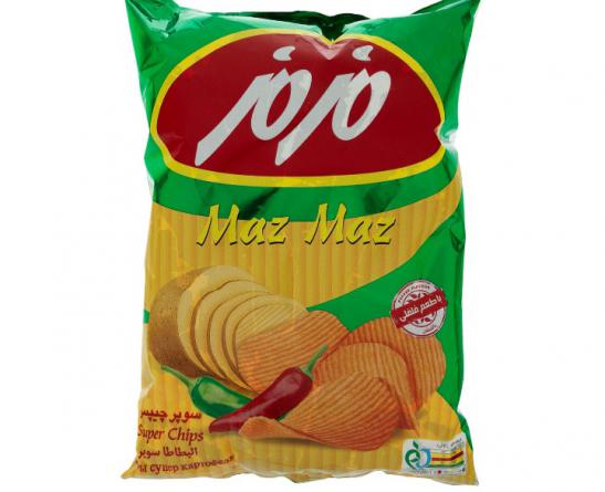 مشخصات چیپس سوپر خانواده مزمز چیپس از خوراکی های بسیار محبوب و خوشمزه در بین افراد مختلف به خصوص کودکان است که از سیب زمینی های ورقه ای و یا خلالی سرخ شده در روغن فراوان به روش های صنعتی و سنتی در طعم و مزه های مختلف تولید و سپس در متریال های پلاستیکی بسته بندی شده و در تمامی بازارهای خرید و فروش داخلی و حتی خارجی به صورت گسترده عرضه می شود.